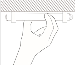 ① 고정브라켓을 제품사이즈에 맞게 상단에 고정한다.